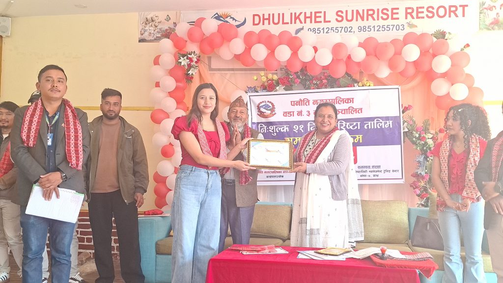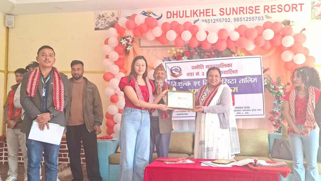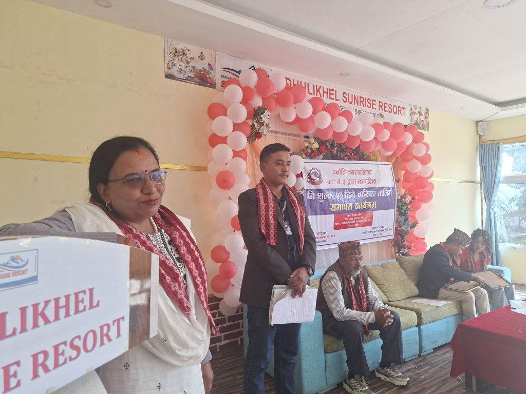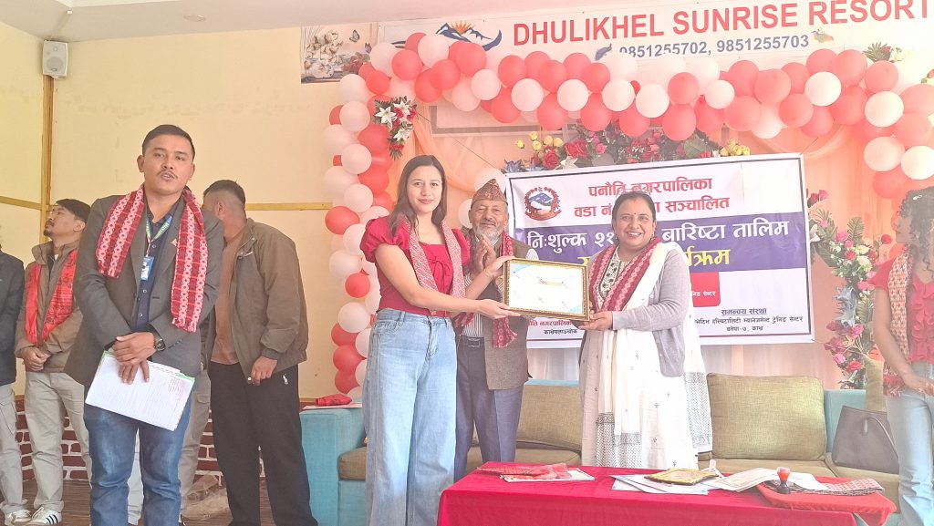 पनौती, काभ्रे — पनौती नगरपालिका वडा नं. ३ द्वारा संचालित २१ दिने निःशुल्क बारिष्टा तालिम सोमबार एक विशेष समारोहका बीच सम्पन्न भएको छ।