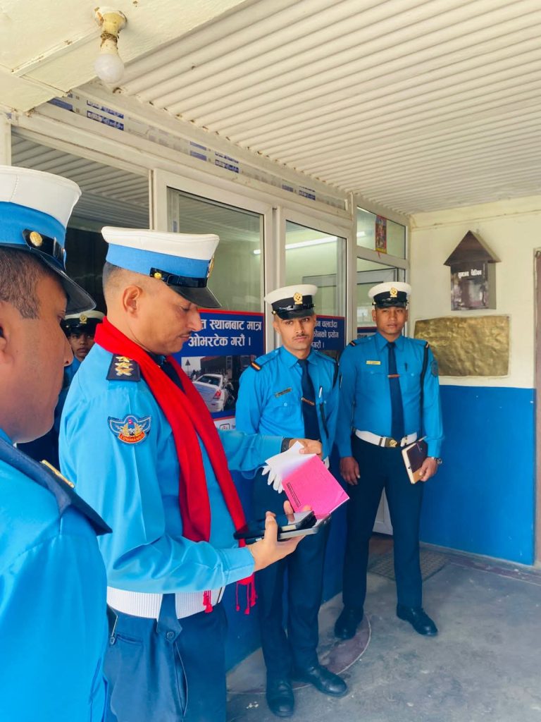 काभ्रेपलाञ्चोक, असोज २८ । नेपाल प्रहरी राजमार्ग सुरक्षा तथा ट्राफिक व्यवस्थापन कार्यालय, रामनगर चितवनका प्रमुख प्रहरी उपरीक्षक डिल्ली नारायण पाण्डेयले जिल्ला ट्राफिक प्रहरी कार्यालय काभ्रेपलाञ्चोकको निरीक्षण गरेका छन्।
