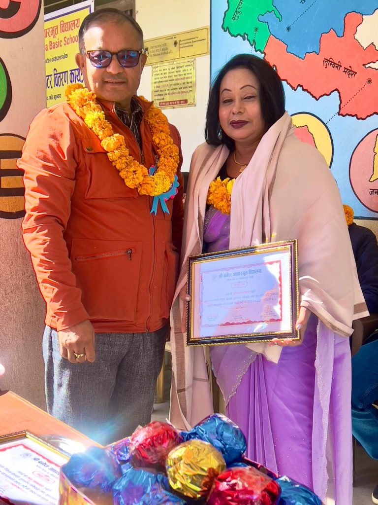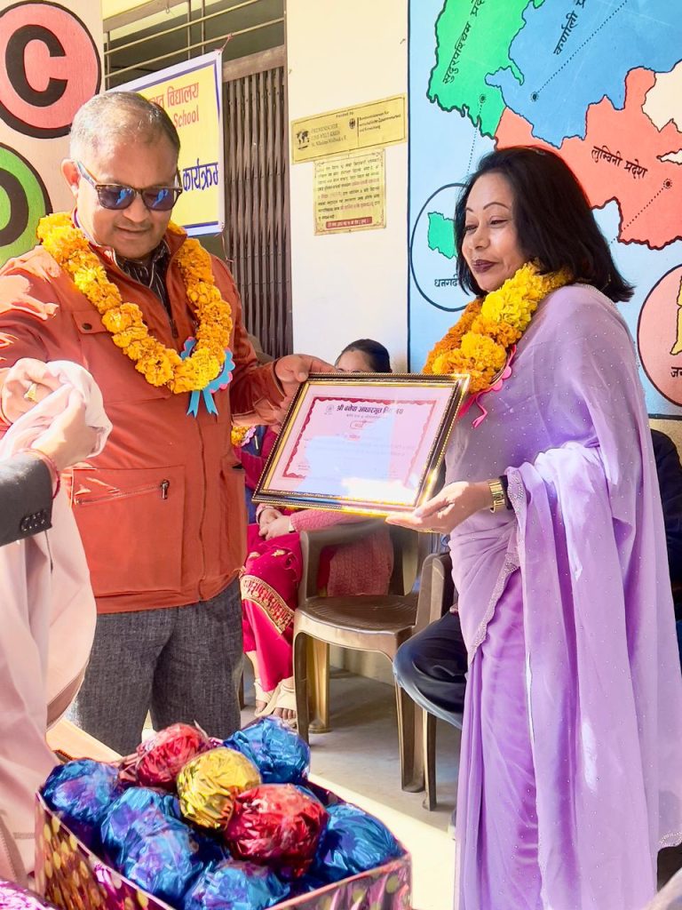 कार्यक्रमका प्रमुख अतिथि बनेपा नगरपालिका नगरप्रमुख शान्ति रत्न शाक्यले कायस्थलाई सम्मान गर्दै विद्यालयको समग्र विकासमा समाजसेवी तथा सचेत नागरिकको भूमिका अत्यन्त महत्वपूर्ण हुने बताए। कार्यक्रममा वडा नं. ५ का वडा अध्यक्ष बलराम अधिकारी, विद्यालयका शिक्षक–शिक्षिका, अभिभावक र विद्यार्थीहरूको उपस्थिति रहेको थियो।