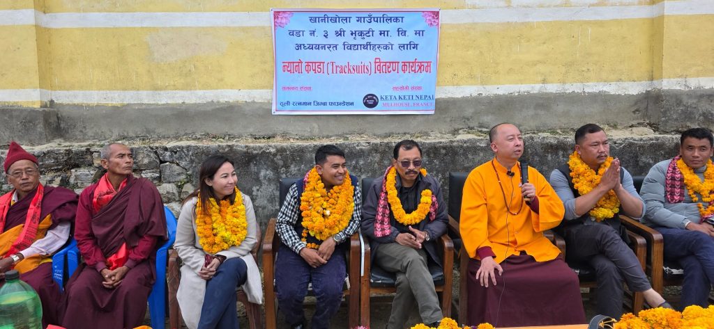 सिङ्गापुरका गुरु थुप्तेन कर्मा रिन्पोछेको विशेष उपस्थितिमा भृकुटी माध्यमिक विद्यालयका नानी–बाबुहरुलाई ट्र्याकसुट, टोपी, जुत्ता र मोजा वितरण गरिएको छ। विद्यालयका विद्यार्थीहरूलाई जाडोमा सहज बनाउने उद्देश्यसहित गरिएको वितरण कार्यक्रममा स्थानीय निकायका प्रतिनिधि तथा समाजसेवीहरूको पनि सहभागिता रहेको थियो।
