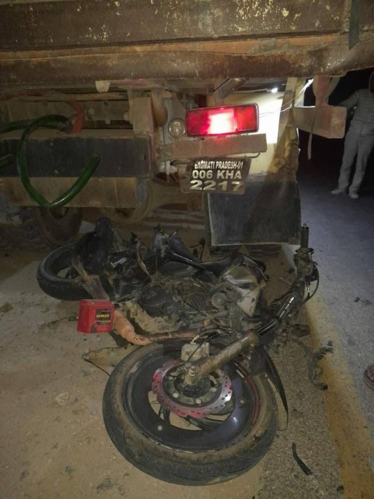पनौतीमा मोटरसाइकल र टिपर ठोक्किँदा एक युवकको मृत्यु