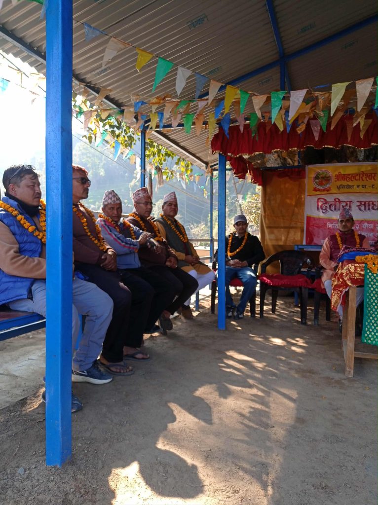 प्रमुख अतिथि वडा अध्यक्ष विनोद गौतमले धार्मिक आस्था र सहयोगको भावनाबाट जनचेतना सामाजिक संस्थाले अपनत्व लिँदै श्रीमद्भागवत वाचनमार्फत रकम संकलन गरिएको जानकारी दिनुभयो। साथै, धुलिखेल नगरपालिकाले गत आर्थिक वर्षमा १० लाख रुपैयाँको बजेटबाट मन्दिर निर्माण कार्य सुरु गरिएको र चालू आर्थिक वर्षका लागि २० लाख रुपैयाँ बजेट विनियोजन गर्न आग्रह गरिएको जानकारी गराउनुभयो। नगर प्रमुख अशोक व्याञ्जुले ६०/४० अनुपातमा बजेट सहयोग गर्ने वचन दिनुभएको कुरा पनि उहाँले उल्लेख गर्नुभयो।