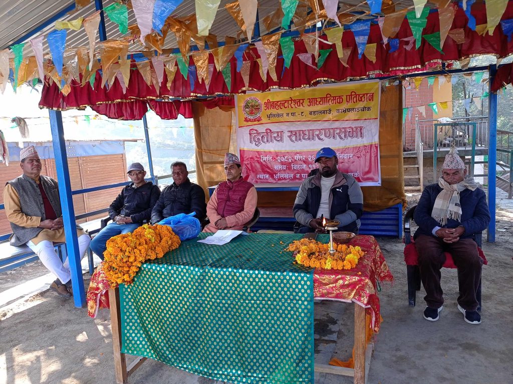 धुलिखेल–८ बडाल गाउँस्थित बहल्टारेश्वर आध्यात्मिक प्रतिष्ठानको दोस्रो साधारण सभा पुस २६ गते सम्पन्न भएको छ। सभा संस्थाका अध्यक्ष रामहरि बडालको सभापतित्व तथा वडा नं. ८ का वडा अध्यक्ष विनोद गौतमको प्रमुख आतिथ्यतामा सम्पन्न भएको हो।