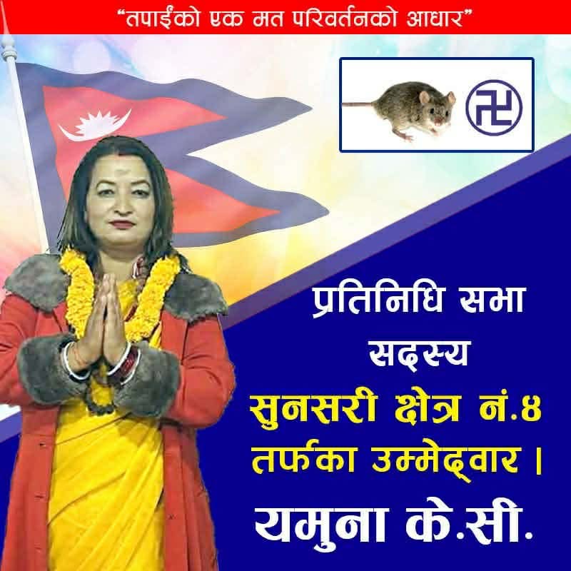 सामाजिक सेवामा गरेको दीर्घ योगदानकै आधारमा यमुना के.सी. हाल सुनसरी क्षेत्र नं. ४ बाट प्रतिनिधि सभा सदस्य पदका लागि स्वतन्त्र उम्मेदवारका रूपमा चुनावी मैदानमा उत्रिनुभएको छ। उहाँको चुनाव चिह्न ‘मुसा’ रहेको छ। स्थानीय स्तरमा उहाँको इमान्दारिता, समर्पण र सेवाभावको व्यापक प्रशंसा हुँदै आएको छ।