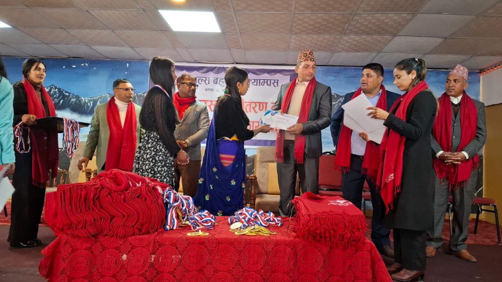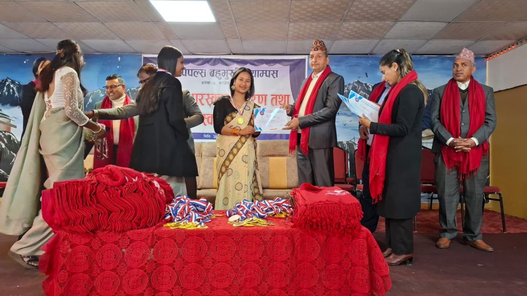 बनेपा – पिपुल्स मल्टिपल क्याम्पसमा स्नातक तह प्रथम वर्षका विद्यार्थीहरूलाई लक्षित गर्दै Welcome Sports Meet 2082 को अवसरमा पुरस्कार वितरण तथा विविध सांस्कृतिक कार्यक्रम भव्य रूपमा सम्पन्न भएको छ।